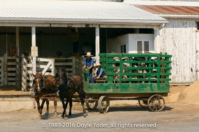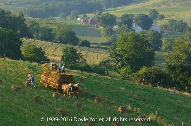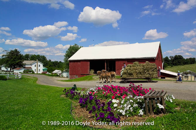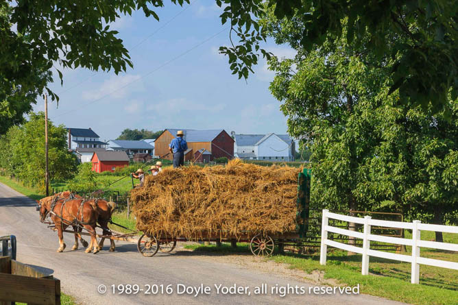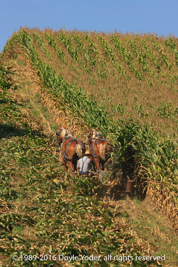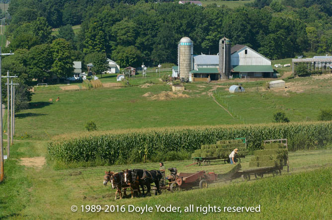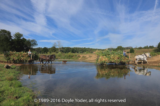Walnut Creek, Holmes Co. Ohio wagons with cornstalks for filling silo at The Farm at Walnut Creek