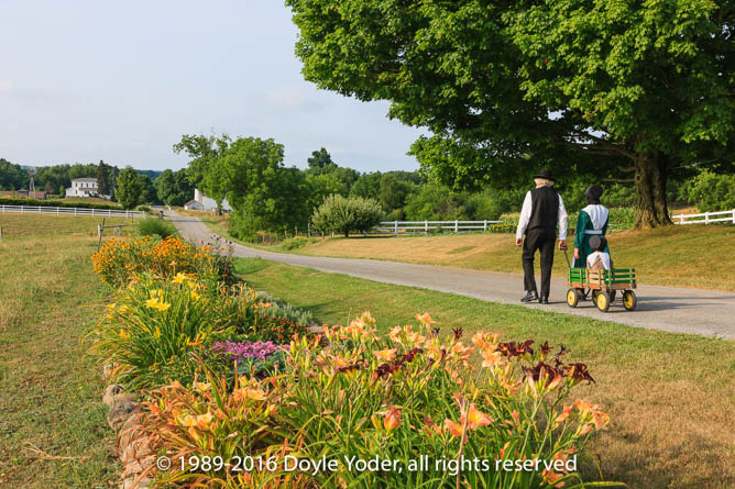 Ura D Miller roadcart going past Set Dannys flowers with white barn behind