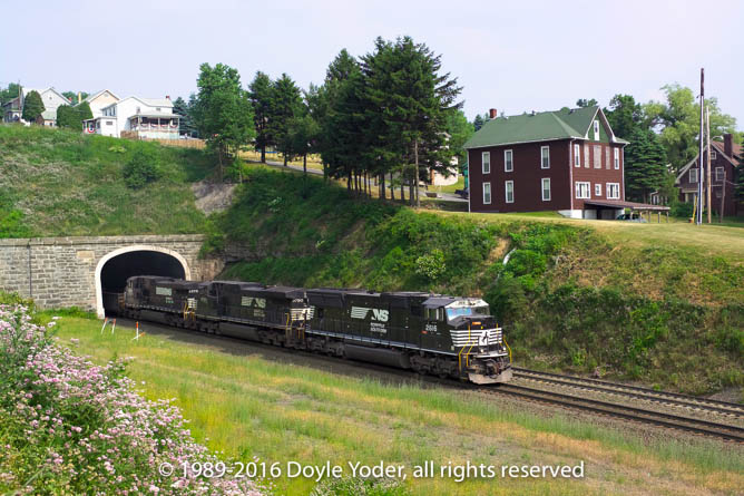 RAILROADS, OH - Ohio Central F-units 6307 and 6313 pulling eastbound passenger train near Adams Mills Ohio May 24 2003